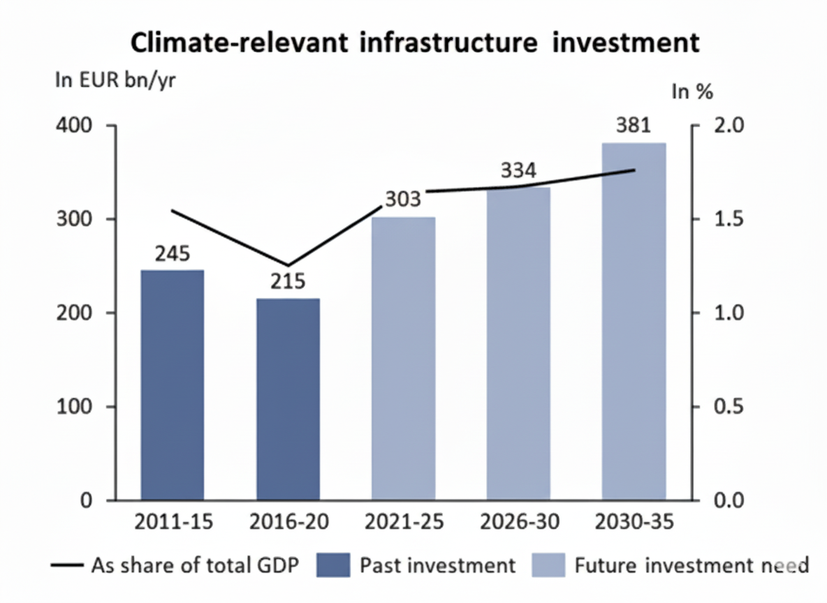 Despite this, actual investment continues to lag behind what the transition demands. The European Parliamentary Research Service has stressed that grid modernisation and expansion are central to achieving decarbonisation targets, yet Member States are not mobilising sufficient capital nor accelerating permitting processes. A recent climate-infrastructure study shows that Europe would need to raise annual climate-related infrastructure investment by nearly €90 billion above 2016–2020 levels to meet its 2021–2025 trajectory. The need is unambiguous, but capital deployment is constrained by both structural and operational barriers.