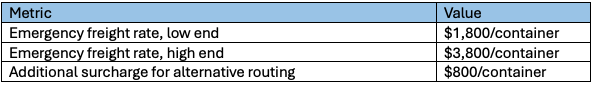 The clearest live evidence is in the invoices faced by cargo owners. In March 2026, major carriers suspended or curtailed Gulf cargo movements, and emergency freight charges of $1,800 to $3,800 per container were imposed on affected routes, alongside an additional $800 surcharge for shipments continuing via alternative routing. That is not an oil-price effect; it is an immediate operating-cost transfer from geopolitics into trade flows.