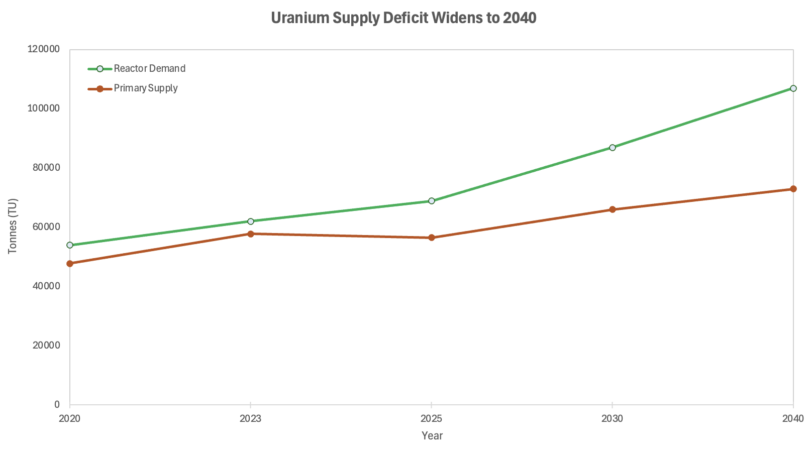 Supply shortfall is structural, not cyclical: demand is projected to reach 107,000 tonnes of uranium by 2040, against primary supply running at roughly 50% of replacement rate today