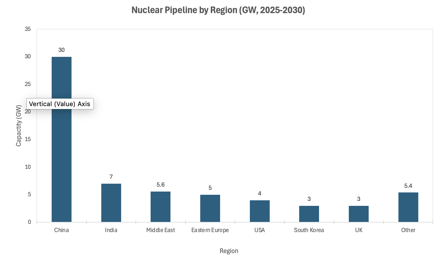 Source: IAEA, World Nuclear Association, IEA — 2025-2030 pipeline